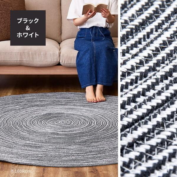 萩原 270068067 ハンドメイド 綿100%の編み込みラグ ブレイド 160R ブラック/ホワイト メーカー直送