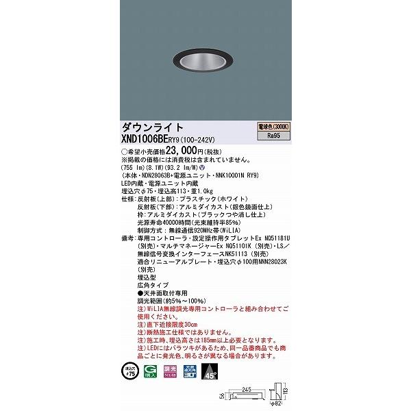 ■返品区分:「返品」お客様都合による返品・交換は受付いたしません。仕様等はご注文前に必ずご確認ください。■送料区分:「送料区分A」※画像はイメージです。商品の詳しい仕様はメーカー受付窓口/HPにてご確認ください。※掲載商品は予告無く販売終了となっている場合もあり、掲載商品全ての出荷確約をするものではありません。パナソニック XND1006BERY9 LED 電球色 WiLIA無線調光 NDN28063B + NNK10001NRY9 20220124 家具、インテリア 照明器具 天井照明、シーリングライト ダウンライト 照明器具 施設用照明器具 ダウンライト LED WiLIA無線調光XND1006BERY9 商品説明