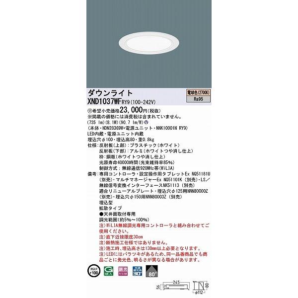 ■返品区分:「返品」お客様都合による返品・交換は受付いたしません。仕様等はご注文前に必ずご確認ください。■送料区分:「送料区分A」※画像はイメージです。商品の詳しい仕様はメーカー受付窓口/HPにてご確認ください。※掲載商品は予告無く販売終了となっている場合もあり、掲載商品全ての出荷確約をするものではありません。パナソニック XND1037WFRY9 LED 電球色 WiLIA無線調光 NDN28369W + NNK10001NRY9 20220124 家具、インテリア 照明器具 天井照明、シーリングライト ダウンライト 照明器具 施設用照明器具 ダウンライト LED WiLIA無線調光XND1037WFRY9 商品説明