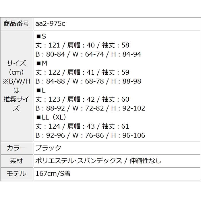 | サイズ (cm) ※B/W/Hは 推奨サイズ | ■S 丈:121 / 肩幅:40 / 袖丈:58 B:80-84 / W:64-74 / H:84-94 ■M 丈:122 / 肩幅:41 / 袖丈:59 B:84-88 / W:68-78 / H:88-98 ■L 丈:123 / 肩幅:42 / 袖丈:60 B:88-92 / W:72-82 / H:92-102 ■LL(XL) 丈:124 / 肩幅:43 / 袖丈:61 B:92-96 / W:76-86 / H:96-106 |