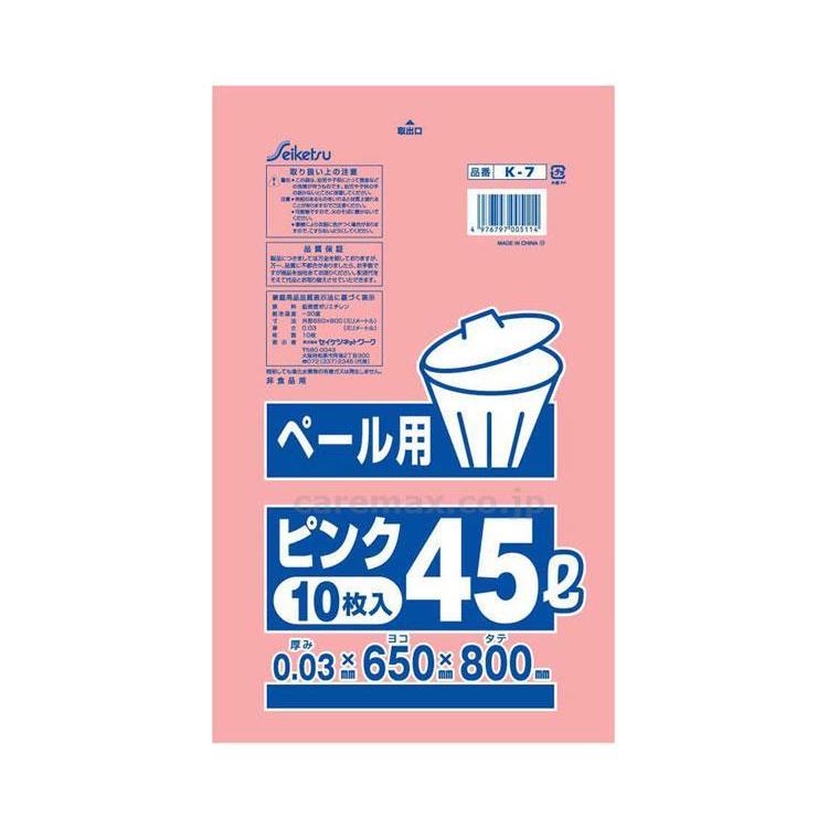消耗品 ゴミ袋 ペール用 10枚 ピンク K-007 0.03×650×800 セイケツネットワーク 取寄品 JAN 4976797005114 介護