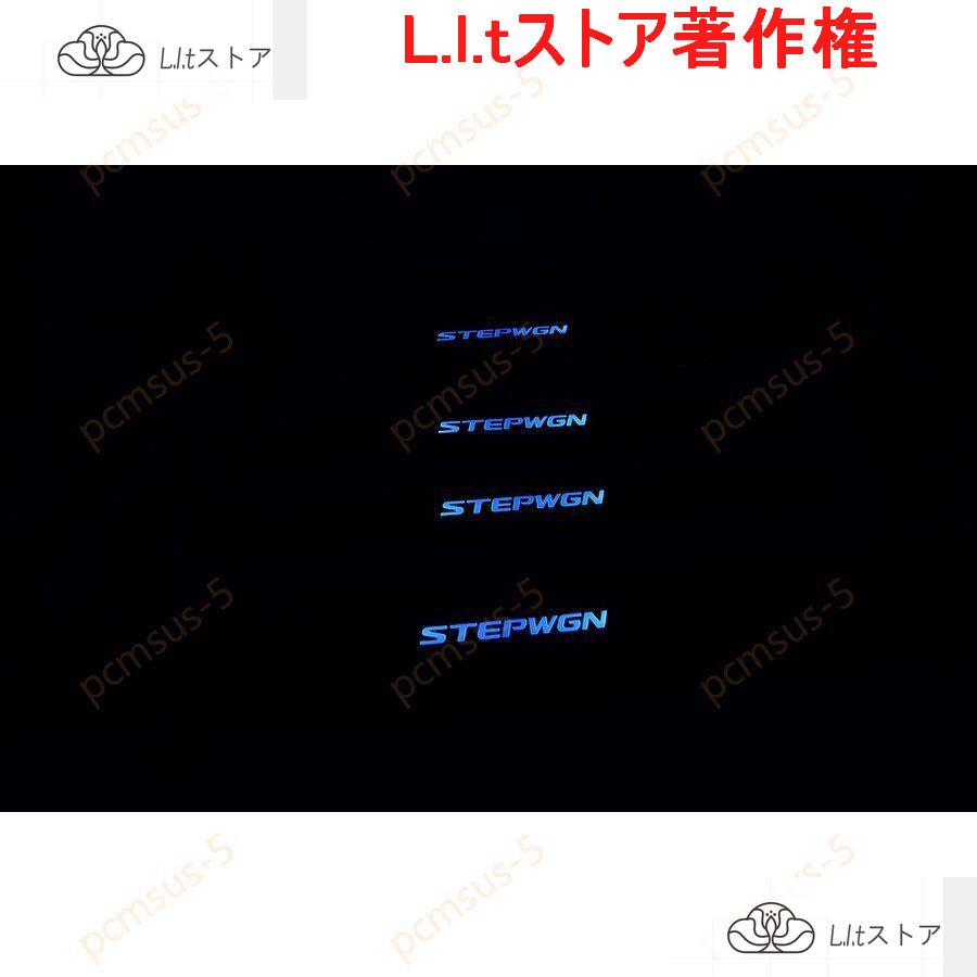 ステップワゴンLEDスカッフプレート青発光 ステンレス製4枚セットすべり止め付き ホンダ内装品パーツ 付き