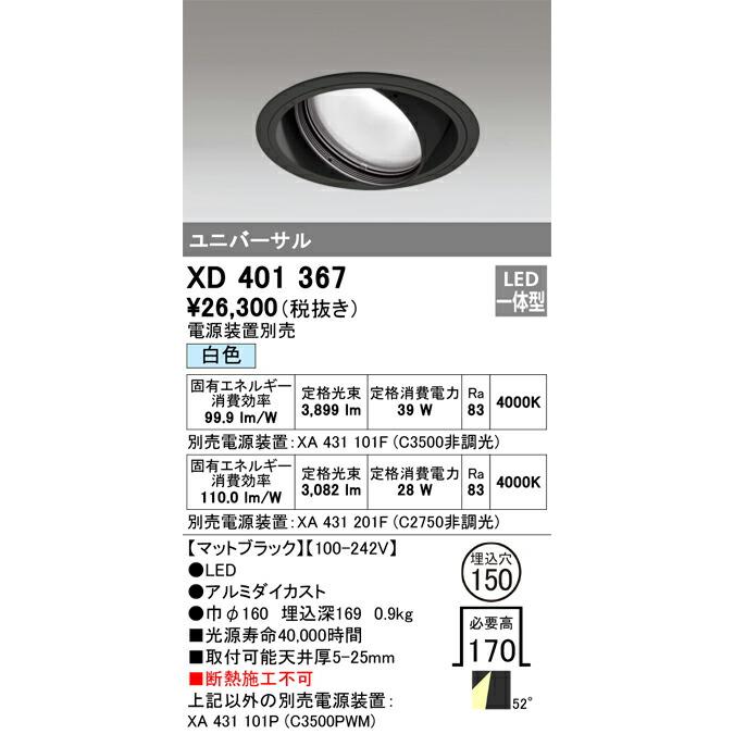 ODELICオーデリックLEDユニバーサルダウンライト(電源別売)XD401367
