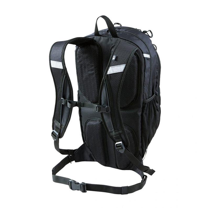 バックパック(50)の容量を大きくしたタイプです。自転車での使用を第一に考えて作られた自転車専用設計のバックパックです。携帯ポンプやヘルメットをはじめ、サイクリングに携帯する小物を収納、左右にはボトルポケットも配置しています。背中には凹凸のフレームを配置し、蒸れずに快適に使用して頂けます。各所の再帰反射が夜間の視認性も確保します。