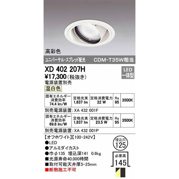 オーデリック XD402207H ユニバーサルダウンライト LED(温白色)