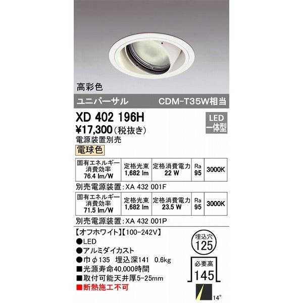 XD402196H オーデリック ユニバーサルダウンライト LED(電球色)