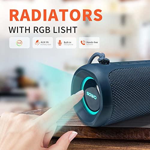 ・Ocean Blue Portable Bluetooth Speaker・・Color:Ocean Blue・[BASSBOOM BASS AND WIRELESS STEREO SURROUND SOUND]: The BASSBOOM technology designed by SOWO improves the bass by 28% on the original basis enhances stronger auditory enjoyment.The wireless speaker supports TWS function you can purchase two speakers at the same time to truly enjoy the stereo surround sound of a movie theater by pairing the TWS function.・[BRILLIANT SOUND WITH RGB COLORFUL LIGHT]: Based on the advanced DSP technolog"}