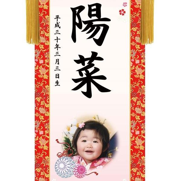 モダン友禅名入掛軸 写真入り 桃の節句 幸福手鞠 専用スタンド・飾り房付 [大] [PTG-005-d][モダン友禅名入掛軸]桃の節句[受注制作7〜10日キャンセル]"}