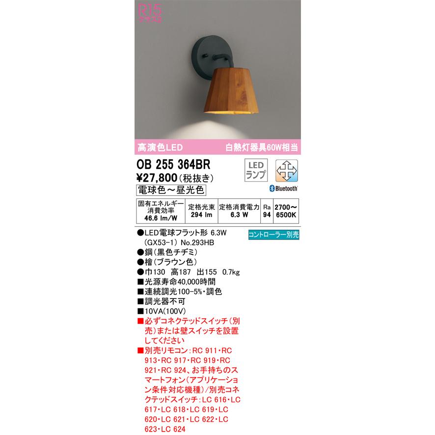 安心のメーカー保証 OB255364BR(ランプ別梱包)『OB255364#+NO293HB』 オーデリック ブラケット LED リモコン別売