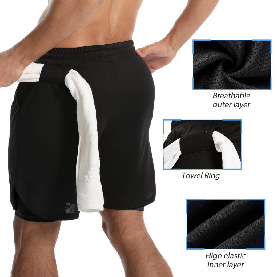 FLYEVEA Mens 2 in 1 Workout Running Shorts Athletic Yoga Gym 7" 並行輸入品