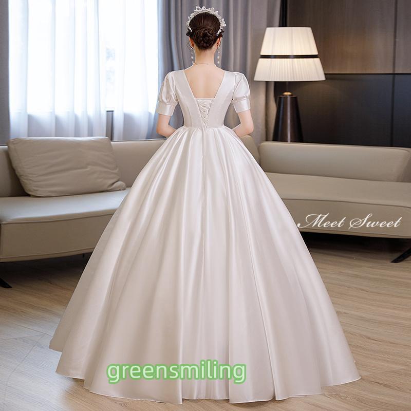 ウェディングドレス ウエディングドレス マタニティドレス 二次会 結婚式 プリンセスドレス ブライダル ロングドレス 花嫁 エンパイアドレス ハイウエスト 半袖