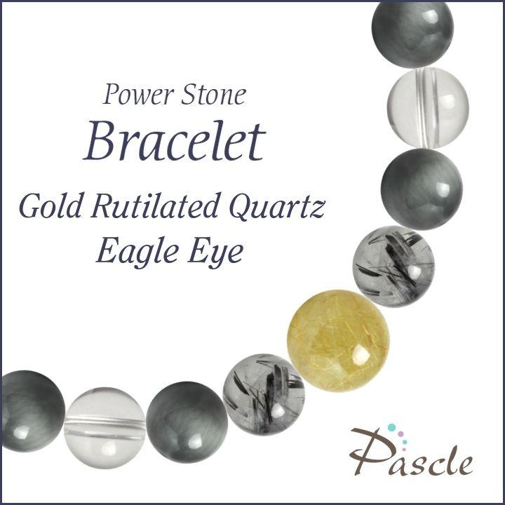 パワーストーン ブレスレット ゴールドルチルクォーツ・イーグルアイ 仕事運 金運 願望成就 癒し