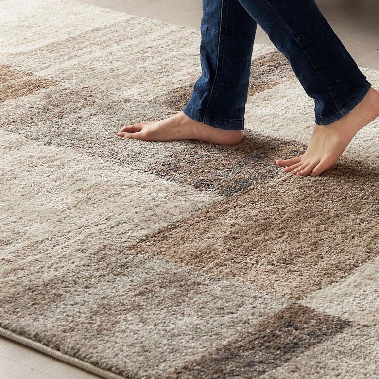 パイルの長さは約15mm。柔らかく、ふわっと沈み込むようなラグです。