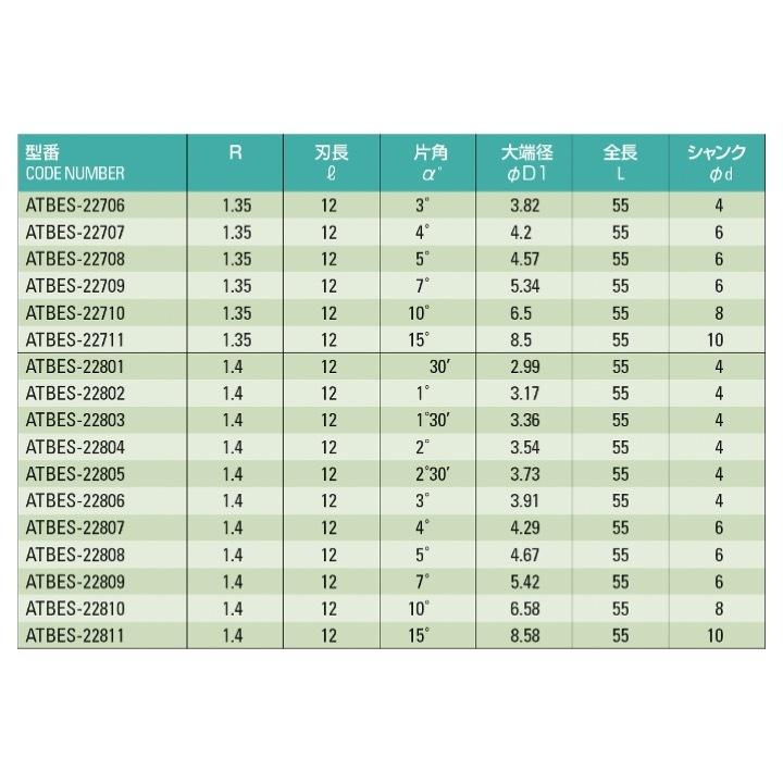 【送料無料】 ATOM ATBES-20907 テーパーボールエンドミル R0.45x4°