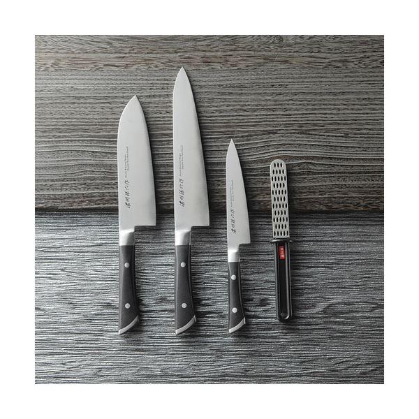 ●セット内容:三徳包丁(刃渡17cm)・牛刀包丁(刃渡21cm)・ペティナイフ(刃渡13.5cm)・シャープナー(全長20.5cm)×各1