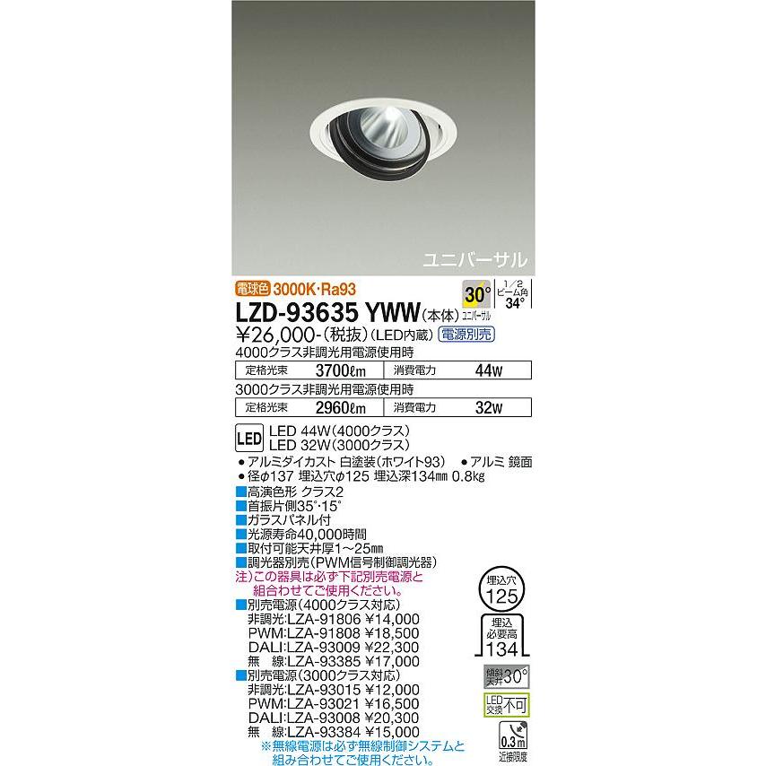 DAIKO 大光電機 LEDユニバーサルダウンライト(電源別売) LZD-93635YWW