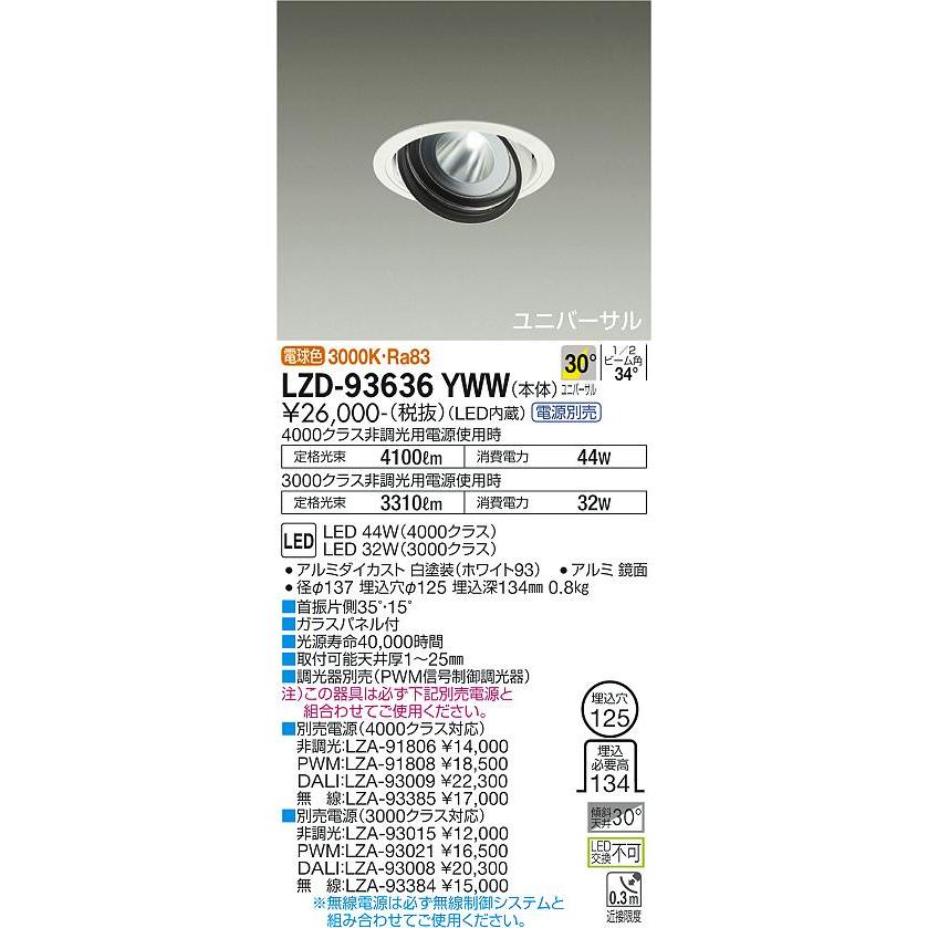 DAIKO 大光電機 LEDユニバーサルダウンライト(電源別売) LZD-93636YWW