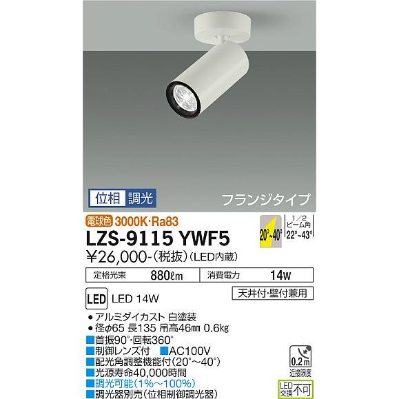 DAIKO 大光電機 LED スポットライト(配光角調整機能付) LZS-9115YWF5