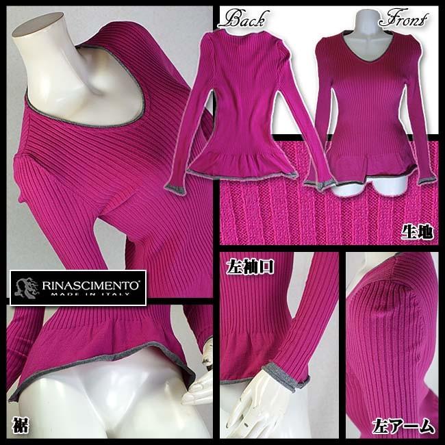 プルオーバー イタリア "RINASCIMENTO" リナシメント フクシアカラー リブ編み サイズS/M 当初税抜13455