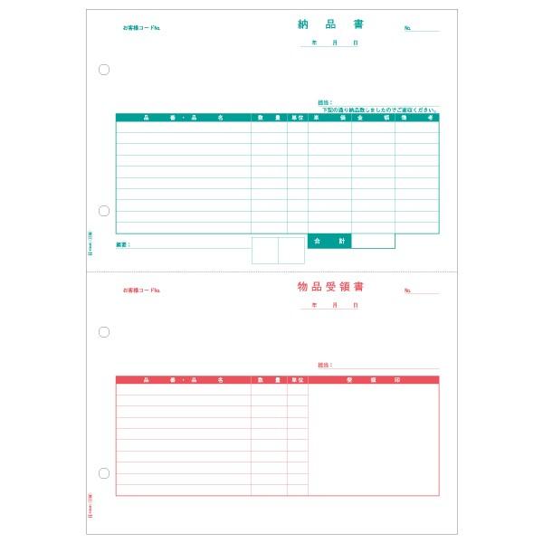 W210×D297mm多くの市販パッケージソフトに対応した純正紙です。◆A4サイズ2面付け◆タイトル:納品書・物品受領書◆ファイル穴:2穴◆穴間隔:80mm◆ミシン目切り離し後のサイズ:210×148.5mm◆入数:500枚