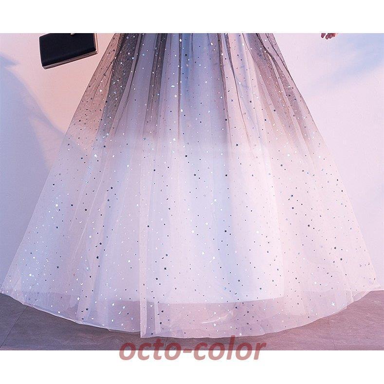 パーティードレス ロング丈 袖あり 結婚式ドレス マキシ丈 レース 切り替え クラーデション パーティー お呼ばれ 発表会 演奏会 成人式 二次会 エレガント