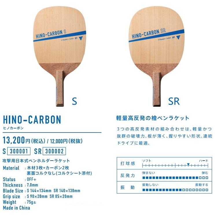 軽量高反発の檜ペンラケット3つの高反発素材の組み合わせは、軽量かつ抜群の破壊力。板が薄く、握りやすい形状。連続ドライブに最適。※裏面コルクなし(コルクシート添付)●商品名 VICTAS 卓球ラケットHINO-CARBON(ヒノカーボン)S(角型) 300001 日本式ペンホルダー 攻撃用●ラケットサイズ 長さ144mm×幅134mm ●グリップサイズ 長さ90mm×厚さ20mm●素材 木材3枚+カーボン2枚●攻守レベル OFF+●ラケット厚 7.0 (mm)●重量 75g±●製造国 中国