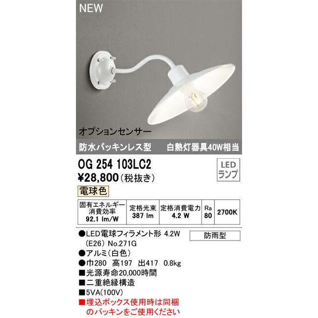 ODELIC オーデリック LEDポーチライト(別売人検知カメラ対応・別売センサー対応) OG254103LC2