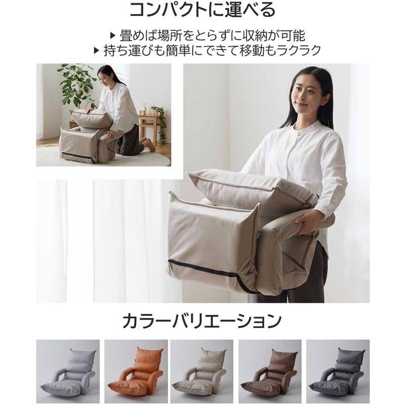 AQUA (アクア) 座椅子リクライニング 肘付き ヴィーガンレザー 座椅子 ブラウン 頭部5段階、腰部14段階, 脚部5段階 低反発