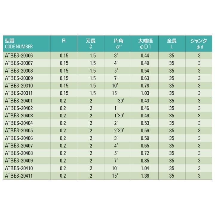 【送料無料】 ATOM ATBES-22808 テーパーボールエンドミル R1.4x5°