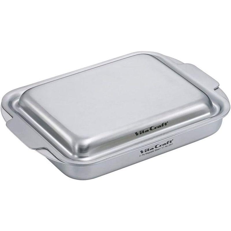 【商品名】 ビタクラフト IH対応 グリルイングリル シルバー 3901 【商品説明】 ・原産国:ベトナム・本体だけではなく、フタも全面5層構造を使用。優れた密閉性で、360度全面から熱を均一にじっくりと伝える・満水容量:蓋0.56L 本体1.04L・空いたコンロで他の調理が進められるので、忙しい時の時短料理にも・素材・材質:ステンレス・蓋付なので、魚焼きグリルを汚すことなく手軽なオーブンとして有効活用できる・魚焼きグリルで、簡単においしいオーブン料理を作れる 【サイズ】 高さ : 6.00 cm 横幅 : 20.40 cm 奥行 : 28.40 cm 重量 : 1.32 kg ※梱包時のサイズとなります。商品自体のサイズではございませんのでご注意ください。"} 高さ : 6.00 cm