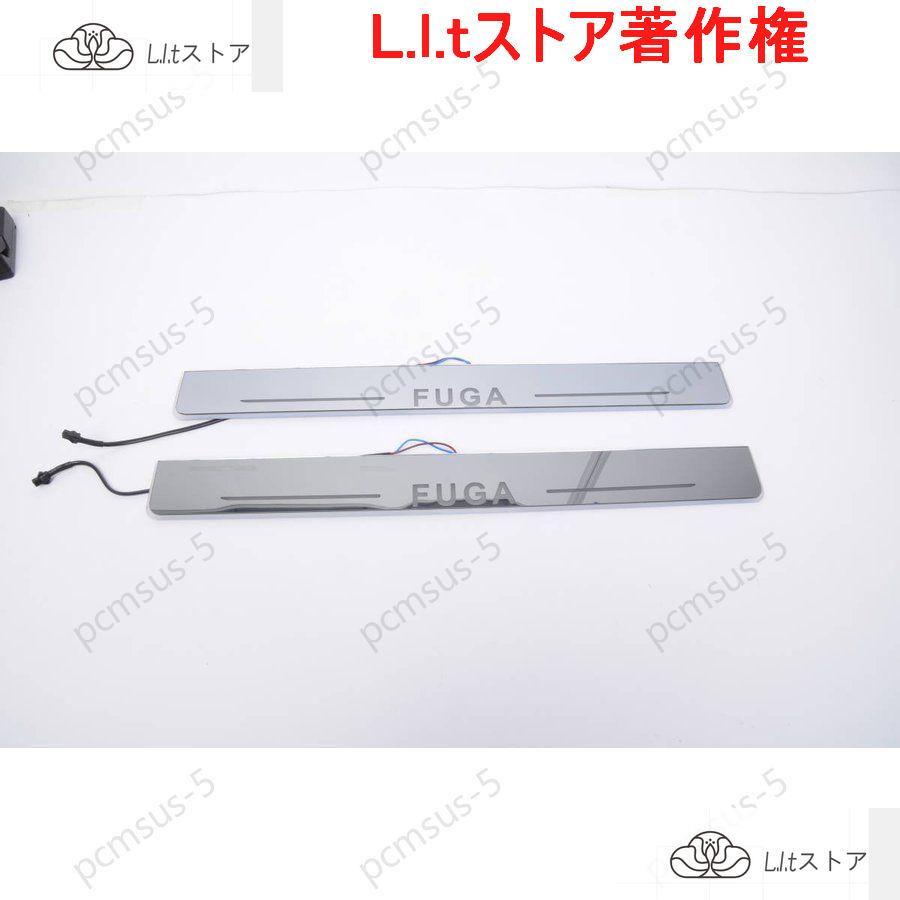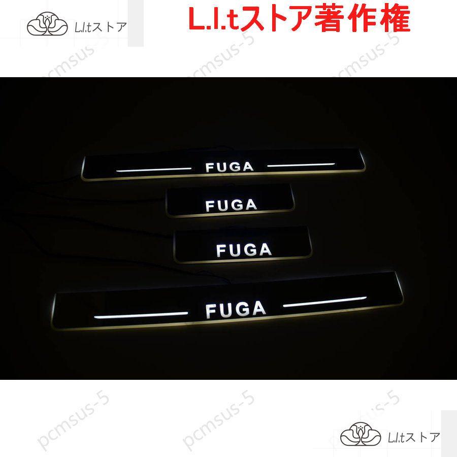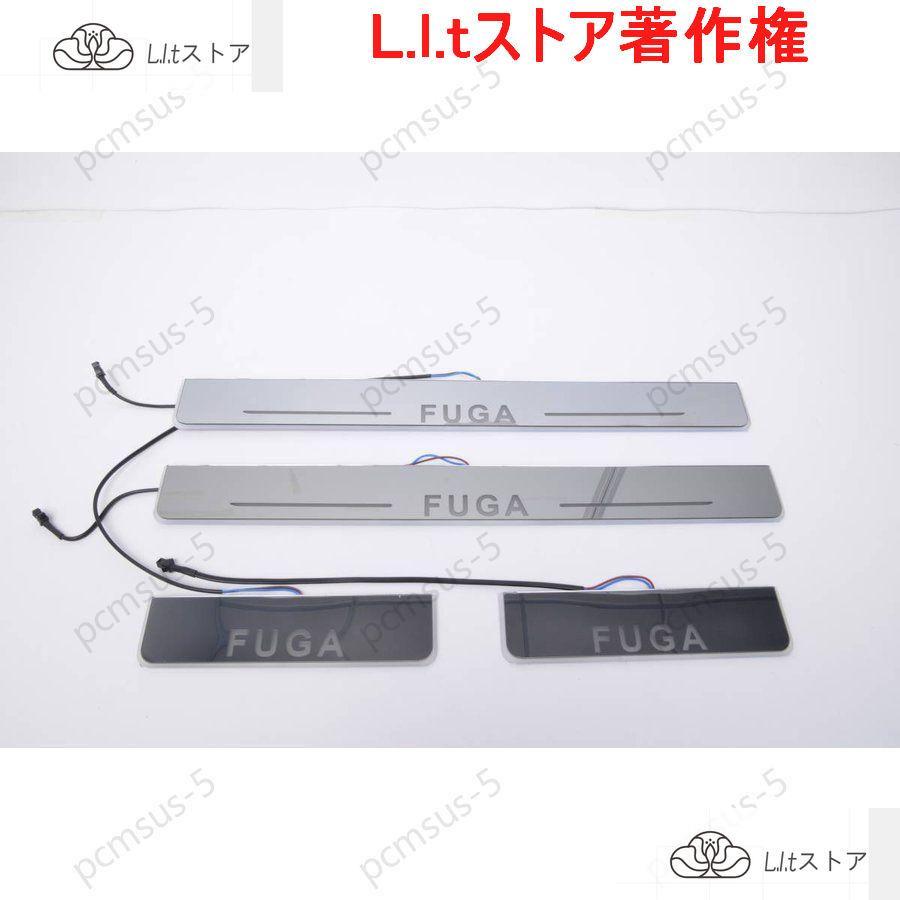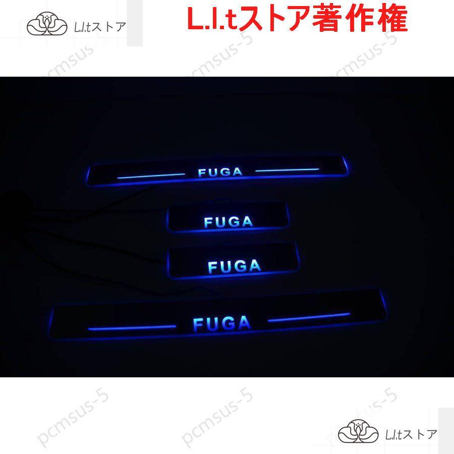 新品!NISSAN FUGA フーガY50/Y51流れるLEDスカッフプレート 内装 イルミネーション鏡面仕様 4枚セット 白/青発光 !