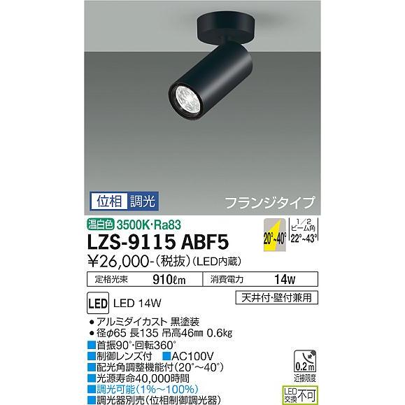 DAIKO 大光電機 LED スポットライト(配光角調整機能付) LZS-9115ABF5