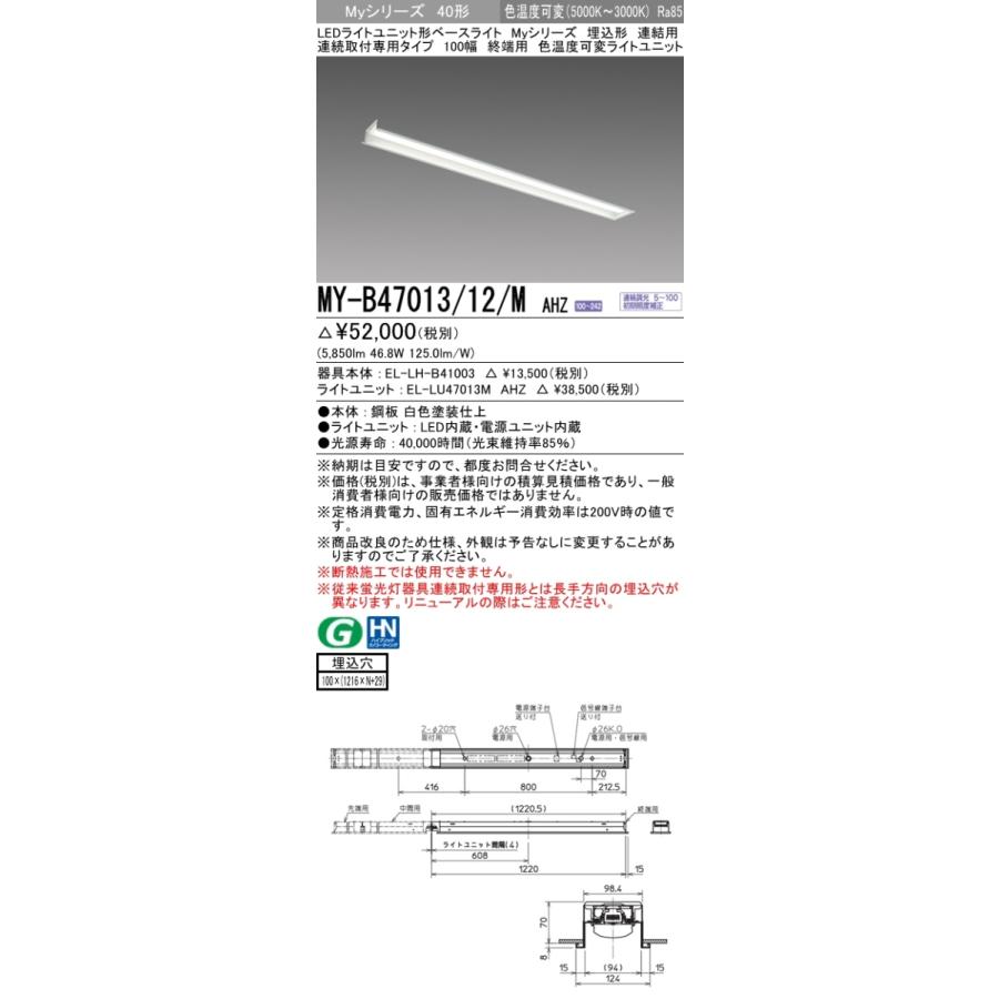 三菱 MY-B47013/12/M AHZ LEDベースライト 埋込形 40形 6900lmタイプ 色温度可変 連結用 100幅 終端用 器具+ライトユニット