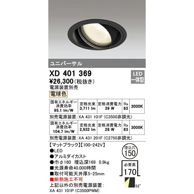 ODELICオーデリックLEDユニバーサルダウンライト(電源別売)XD401369