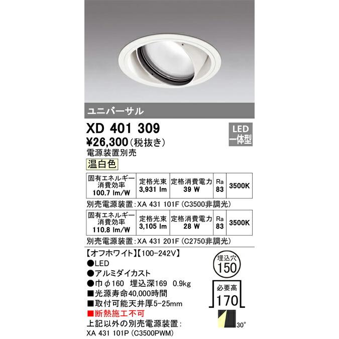 ODELICオーデリックLEDダウンライトXD401309(電源別売)