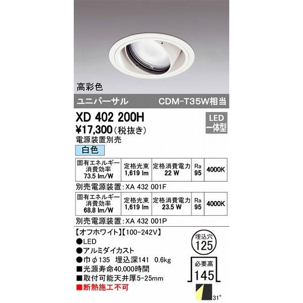 オーデリック XD402200H ユニバーサルダウンライト LED(白色)