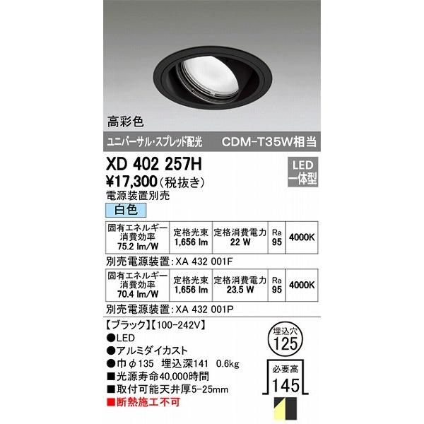 XD402257H オーデリック ユニバーサルダウンライト LED(白色)