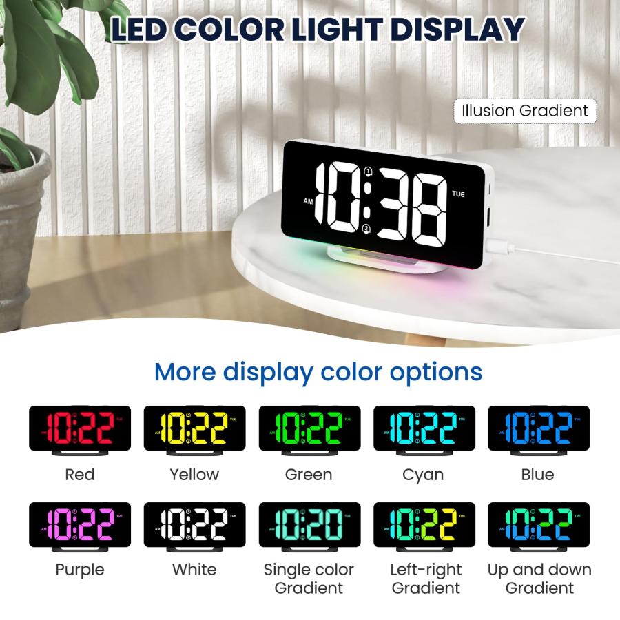 SMOUPING デジタル目覚まし時計 カラフルなダイナミックRGBナイトライト 音量/色調整可能 USB C充電器ポート 7イン 並行輸入品