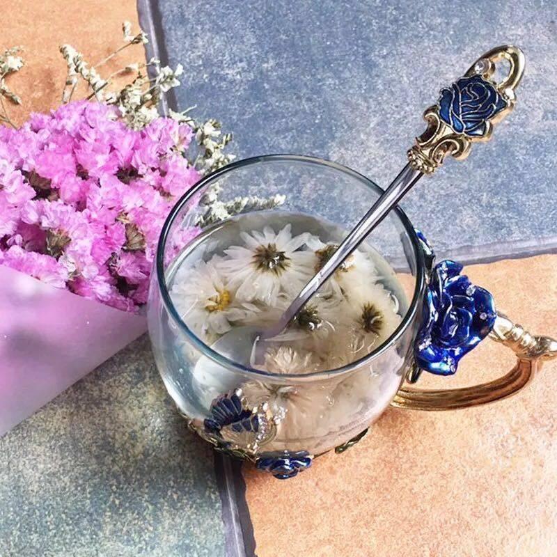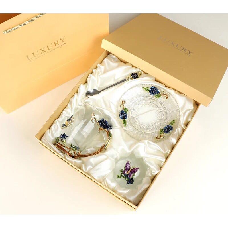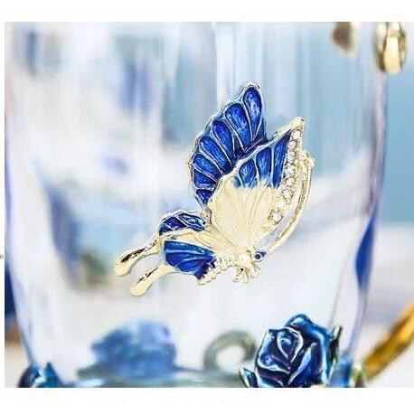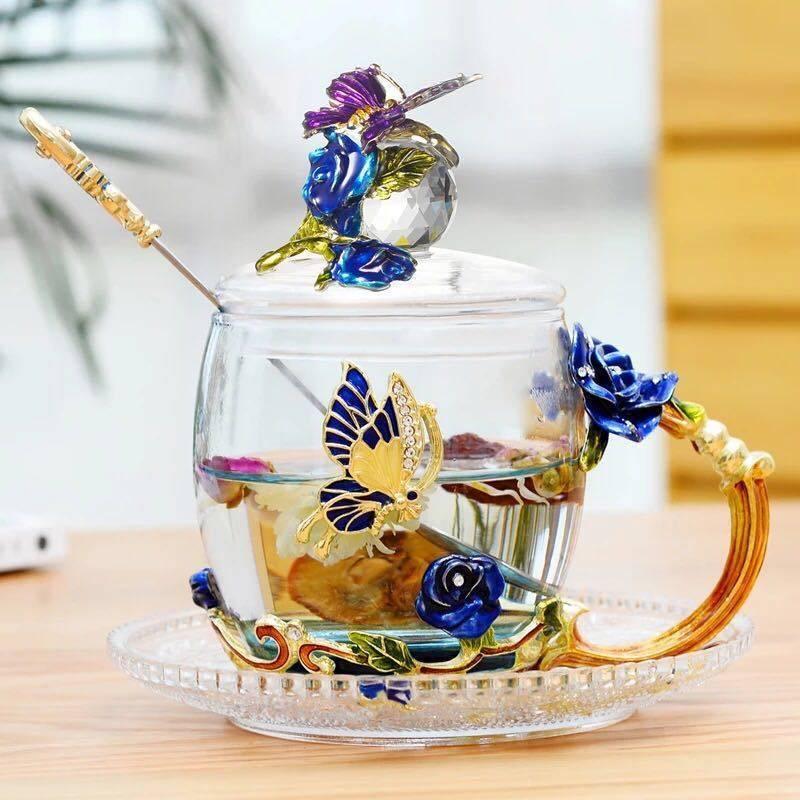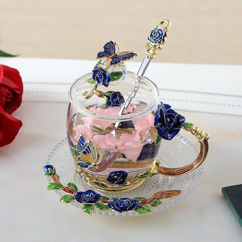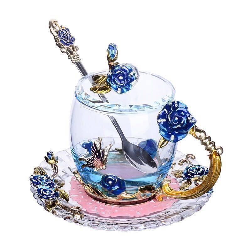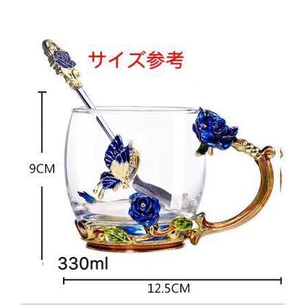 A05725 薔薇花柄 ガラス製 .ティーカップ 4点セットコーヒーカップ