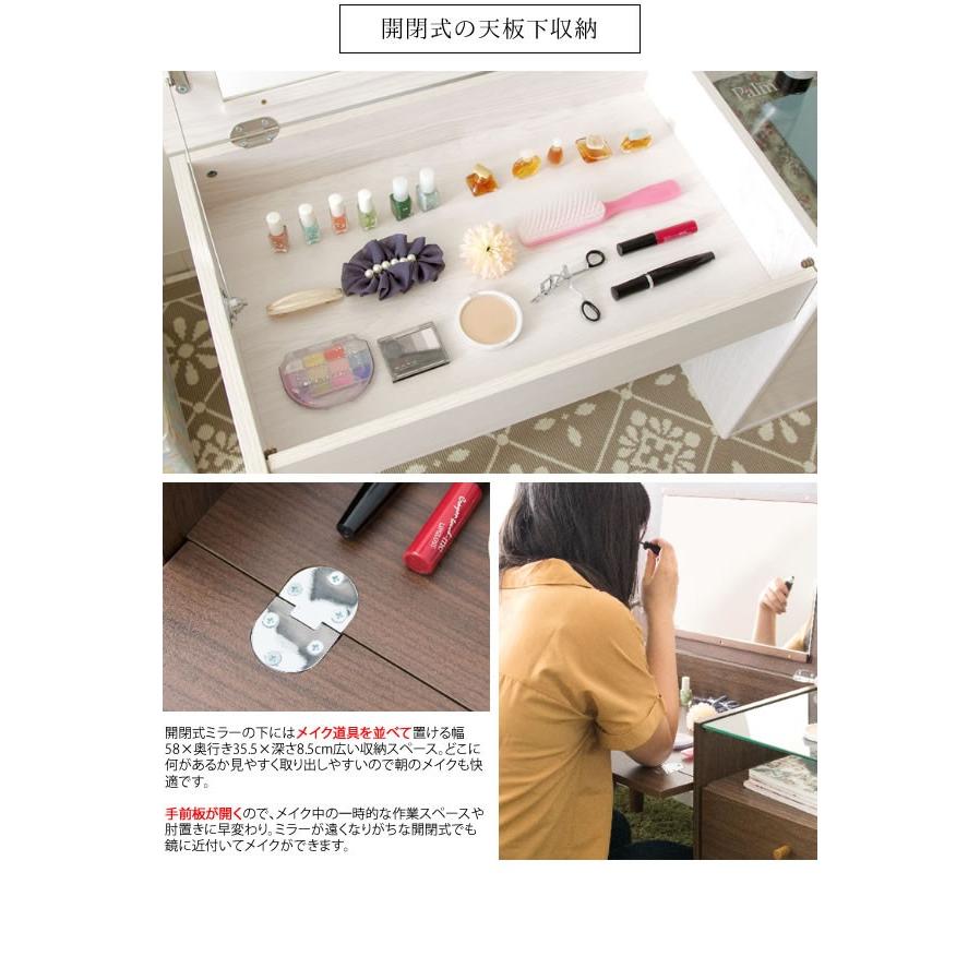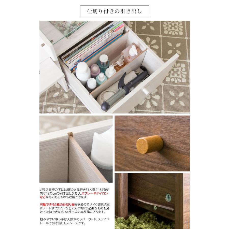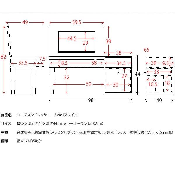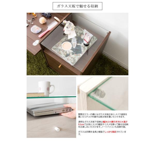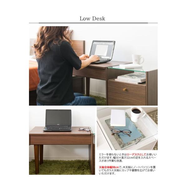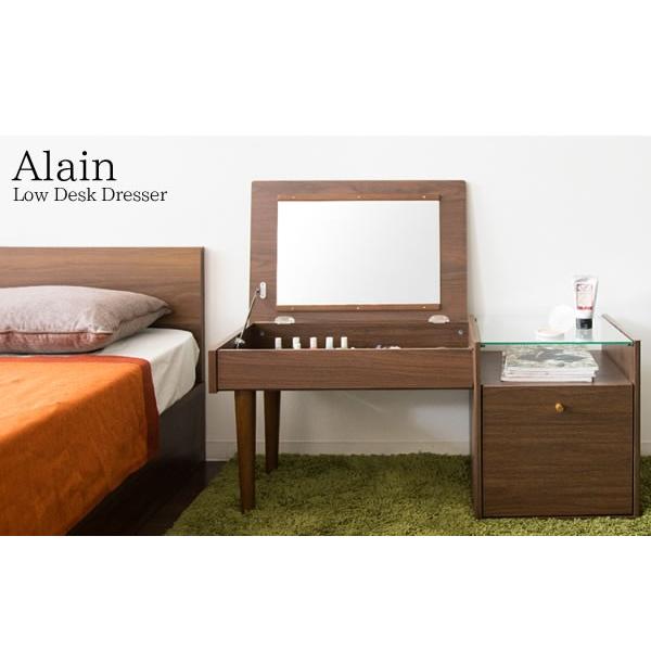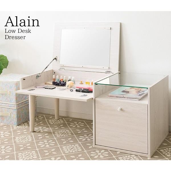 ドレッサー 北欧風 ローデスクドレッサー Alain(アレイン) おしゃれ 開閉式ミラー 強化ガラス ブラウン・ホワイト 送料無料