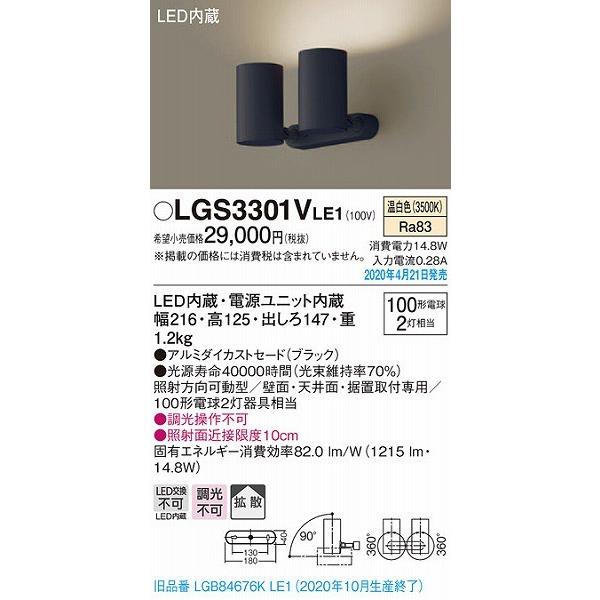 パナソニック スポットライト ブラック LED(温白色) LGS3301VLE1 (LGB84676KLE1 後継品)