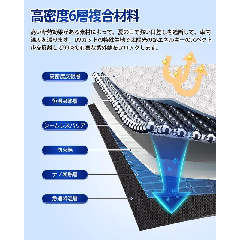 • 3.【高品質6層構造・断熱・保温・UVカット】アップグレードと厚み付け、アルミホイルの6層、より多くの日陰、より多くの断熱。表面に銀塗った素材を使用、裏面に黒色断熱材質を使用、熱放射の遮断、遮光、冷却の効果が大幅に向上します。遮光・断熱・保温・プライバシー保護のための必需品となっております。一年中使えるカーサンシェード。車中泊も快適です。