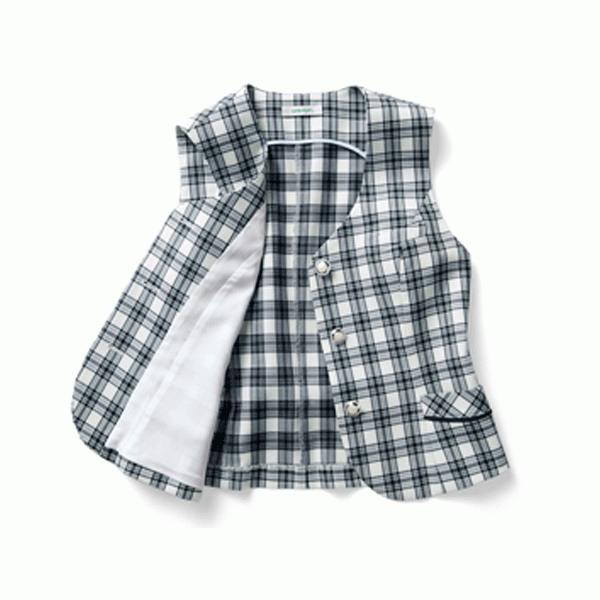 ベストは、背抜き仕様でバツグンの通気性。さらに清涼裏地「アクアスクリュー」の採用で、ベトつき感なし!クールラメチェック素材:ポリエステル79%・毛20%・ナイロン1%■洗濯機■吸水吸熱"}