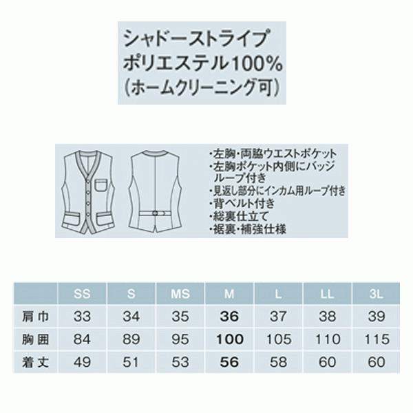 生地名:シャドーストライプ混紡率:ポリエステル100%(ホームクリーニング可)・左胸・両脇ウエストポケット・左胸ポケット内側にバッジループ付き・見返し部分にインカム用ループ付き・背ベルト付き・総裏仕立て・裾裏・補強仕様