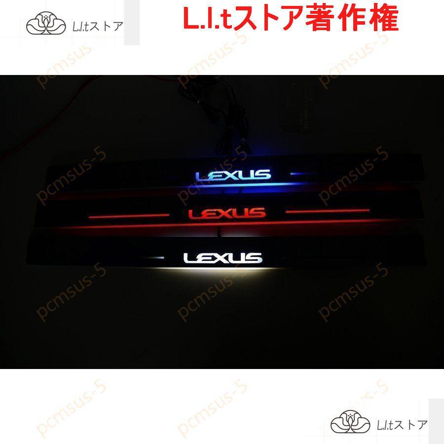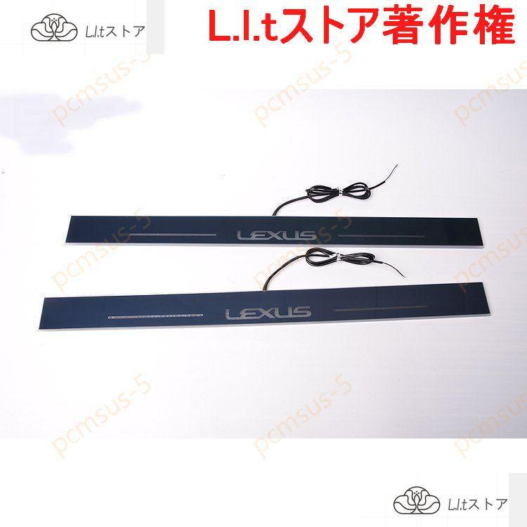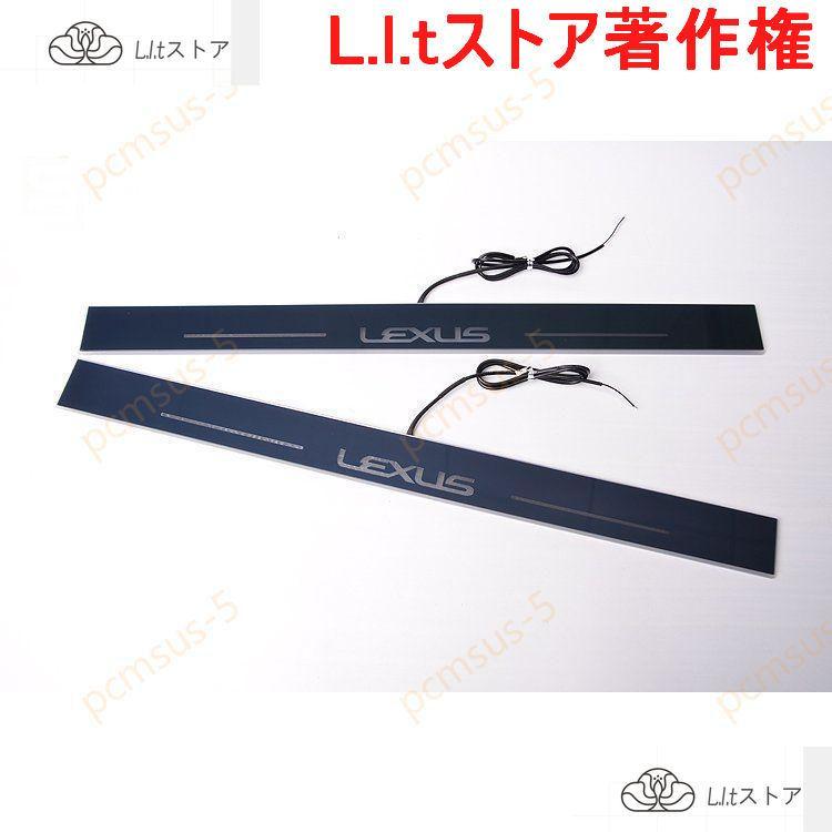 !レクサスLS専用LED流れるスカッフプレートアクリル製 ドアステッププレートホワイト発光4枚フルセット トヨタ内装パーツ