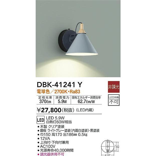 DBK-41241Y LEDブラケットライト 電球色 非調光 白熱灯60W相当 大光電機 照明器具 洋風 インテリア照明