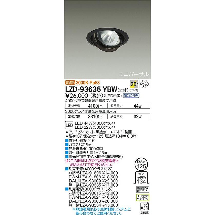 DAIKO 大光電機 LEDユニバーサルダウンライト(電源別売) LZD-93636YBW
