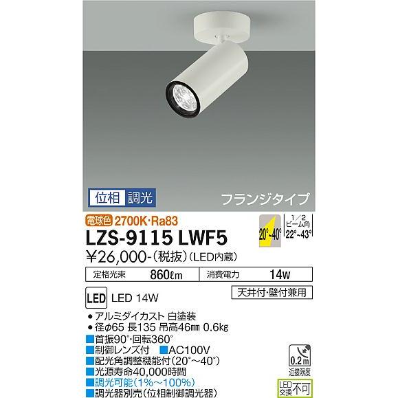 DAIKO 大光電機 LED スポットライト(配光角調整機能付) LZS-9115LWF5