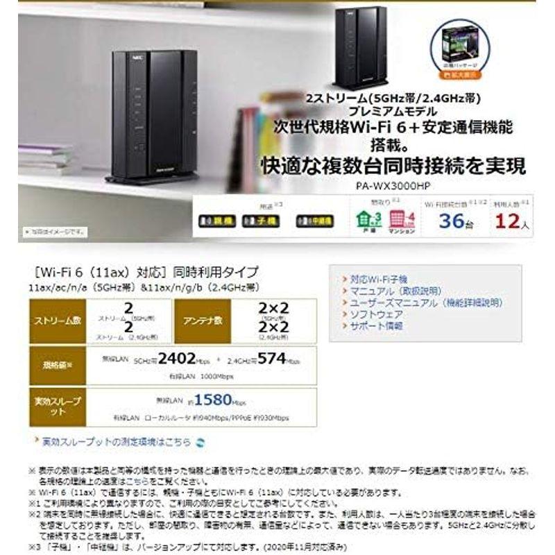 - NEC 無線LAN WiFi ルーター Wi-Fi6 (11ax) / Aterm WX3000HP 2ストリーム (5GHz帯 / 2.4GHz帯) PA-WX3000HP【 iPhone 13 / 12 / iPhone SE(第二世代) / Nintendo Switch メーカー動作確認済み】