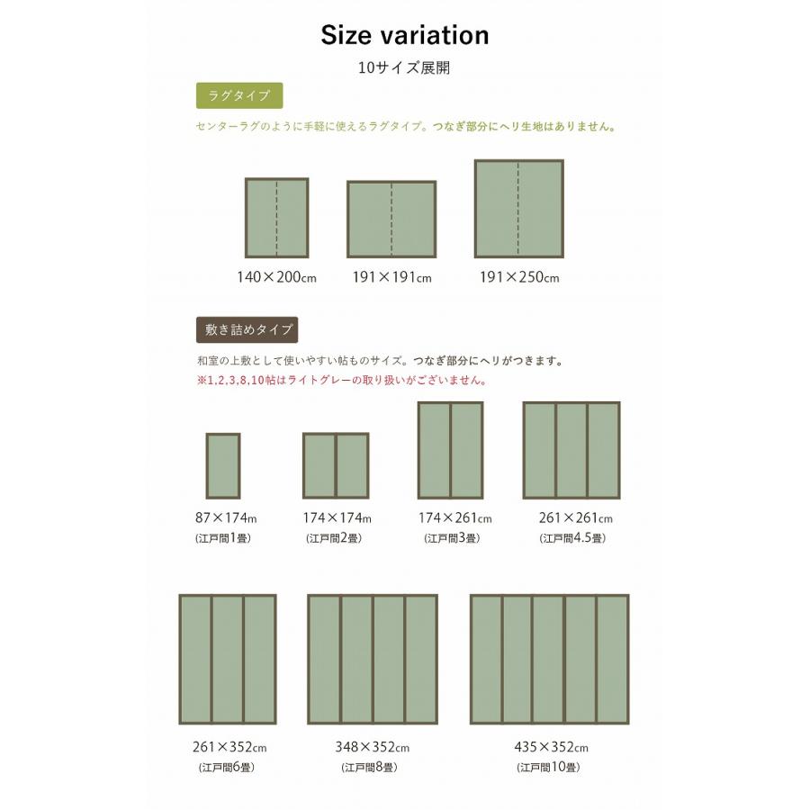 色の濃く見える部分と薄く見える部分をランダムに配置することで、シンプルかつおしゃれな商品に仕上げました。国産(九州産)のい草を使用しています。一本一本が太く、表皮が厚く繊維がキメ細かいので弾力性があり、耐久性に優れています。い草には空気の自然浄化作用、湿度の調節作用などがあります。また汚れにくく、使用するうちに黄金色に変化し味が出ます。青森県のヒバの木から抽出した「ヒバエッセンス」をメーカー独自の技術で生地表面に加工しました。【サイズ】約191×191cm【組成】い草 ※紋織/ヘリ=綿85%、麻15%【原産国】日本製【洗濯表示】洗えません。※商品が新しいうちは、多少の折ジワが残る場合がありますが、ご使用と共に次第に馴染んでいきます。※写真は表記サイズと異なる場合がございます。※画面上のカラーはご使用ブラウザやモニターの設定により、実物とは若干異なる場合がございます。※ この商品は送料無料です。(但し、北海道・沖縄・離島にお届けの場合は別途お見積もりになります)※ 注文が集中した場合など、発送が遅れたり、在庫切れで販売できなくなる可能性がございます。